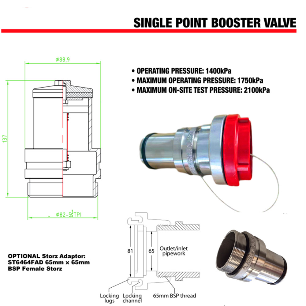 65 mm QRT femmina x 65 mm BSP maschio singolo booster