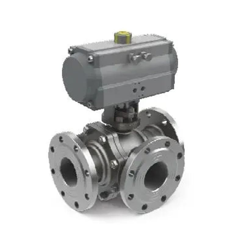 Valvola a sfera filettata in acciaio inossidabile a 3 vie con pneumatica